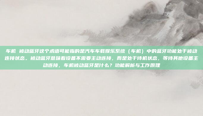 在汽车中,蓝牙功能通常用于连接手机或其他蓝牙设备,以便进行音乐播放、电话通话等操作,被动蓝牙可能意味着车机的蓝牙功能已经完成配对,处于待机状态,当手机或其他设备靠近时,会自动连接到车机。