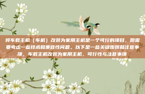 将车载主机改装为家用主机是一个既有趣又具有挑战性的项目,特别适合喜欢DIY的朋友们尝试,只要注意兼容性、电源适配和散热等问题,就可以成功实现这一改装,为家庭娱乐增添更多可能性,在改装过程中,建议根据自身需求和预算,灵活调整改装方案,以获得最佳的使用体验。