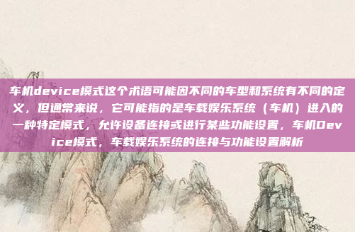 车机device模式是一种车载娱乐系统(车机)的特定功能模式,通常允许设备连接或进行功能设置,该模式下,用户可以通过手机或其他设备与车机连接,实现蓝牙音频播放、媒体控制、导航同步等功能,车机device模式还可能支持系统更新、诊断工具的使用或其他高级功能,由于不同车型和车载系统的差异,该模式的具体定义和功能可能有所不同,但其核心目的是为用户提供更便捷的设备连接和功能设置体验。
