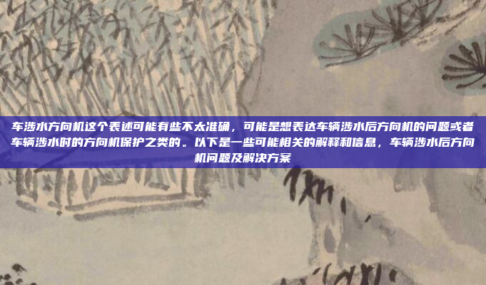 “车涉水方向机”这一表述可能不够准确,但可以理解为车辆在涉水过程中或涉水后方向机可能出现的问题或需要采取的保护措施,方向机是车辆转向系统的重要组成部分,负责将方向盘的转动传递到车轮,从而实现车辆的转向,在涉水时,如果水位较高,可能会导致方向机进水,从而引发故障,如转向卡滞或助力失效,车辆涉水后,若不及时处理,水分可能残留并导致方向机内部零件腐蚀或生锈,影响其正常工作,涉水后建议及时检查方向机及其相关部件,必要时进行清洁和维护,以确保车辆转向系统的安全性和可靠性。