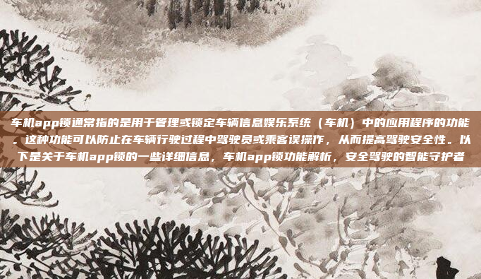 车机App锁是一种用于管理车辆信息娱乐系统(车机)应用程序的功能,旨在通过锁定特定应用或限制操作来提高驾驶安全性,在车辆行驶过程中,该功能可防止驾驶员或乘客因误触或误操作而导致分心,从而降低潜在的交通事故风险,车机App锁通常支持驾驶员自定义设置,允许其选择锁定或限制使用哪些应用程序,同时可能提供额外的安全措施,如通过物理按钮或语音控制解除锁定,这种功能不仅提升了驾驶安全性,还为用户提供了更智能化的交互体验。