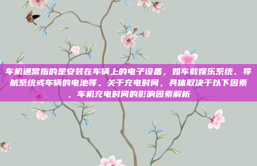 车机是指安装在车辆上的电子设备,包括车载娱乐系统、导航系统或车辆电池等,关于车机的充电时间,主要取决于以下几个因素:电池容量的大小直接影响充电时间,容量越大,充电时间通常越长;充电器的功率也是一个关键因素,高功率充电器可以显著缩短充电时间;设备的功耗水平也会影响充电时间,功耗较高的设备需要更长时间才能充满,车辆的电源系统稳定性、外界温度以及使用环境等也会对充电时间产生一定影响,这些因素相互作用,导致不同车机设备的充电时间存在差异。