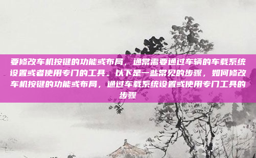 要修改车机按键的功能或布局,通常需要通过车辆的车载系统设置或使用专门的工具,进入车辆的车载系统设置菜单,找到与按键布局或功能相关的选项,在系统设置中,可以选择不同的按键布局模板,或根据个人需求自定义按键功能,对于更复杂的调整,可能需要使用车辆制造商提供的专用工具或软件,这些工具通常能够对按键的布局和功能进行更详细的设置,在调整过程中,建议参考车辆的用户手册,以确保操作符合车辆的兼容性和安全性要求,使用物理工具调整按键布局时,需谨慎操作,避免对设备造成损坏,通过这些方法,用户可以根据个人习惯和需求,优化车机按键的使用体验。