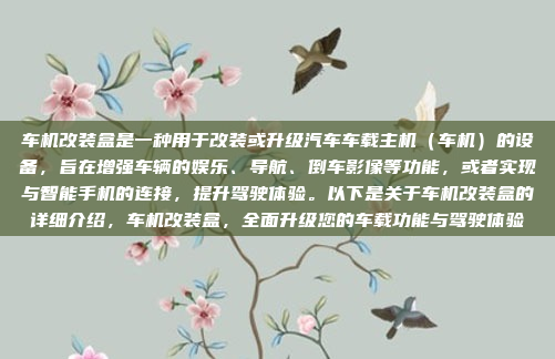 - 兼容性:改装盒需与车辆型号、车机系统完全兼容,否则可能导致功能异常或无法使用。