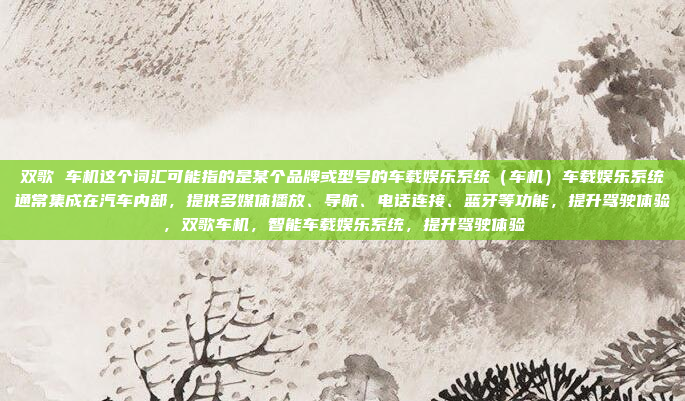 双歌 车机可能指的是某个品牌或型号的车载娱乐系统(车机),这类系统通常集成在汽车内部,为驾驶者提供多媒体播放、导航、电话连接、蓝牙等功能,旨在提升驾驶体验,车载娱乐系统通过整合多种功能,使驾驶者能够更方便地使用娱乐、导航和通信服务,从而增强驾驶乐趣和便利性,双歌 车机可能具备这些典型功能,为用户带来更智能化的车内体验。