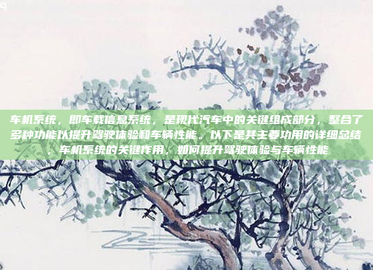 车机系统(车载信息系统)是现代汽车的关键组成部分,通过整合多种功能显著提升了驾驶体验和车辆性能,其主要功用包括信息娱乐、导航、车辆控制、安全辅助、远程控制和OTA升级等,信息娱乐功能为驾乘者提供音乐、视频、语音助手等服务,丰富了车内体验;导航系统结合实时交通数据,优化路线规划,提升出行效率,车辆控制功能则通过触摸屏或语音指令实现对空调、座椅、灯光等设备的便捷操作,安全辅助功能如车道保持、自适应巡航和紧急制动等,有效提升了行车安全性,远程控制功能允许用户通过手机或智能设备查看车辆状态、远程启动或锁车,极大便利了日常使用,OTA升级确保了系统和应用的持续优化与更新,使车机系统始终保持高效和智能,总体而言,车机系统通过智能化和多功能化,为用户带来了更安全、舒适和便捷的驾驶体验。