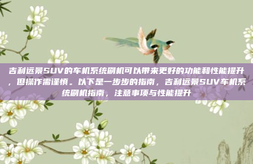 吉利远景SUV的车机系统刷机可以显著提升车辆的功能和性能,但操作需谨慎以避免潜在风险,刷机前,建议备份重要数据并确保车辆处于良好状态,操作时,需准备专用工具和稳定的电源环境,严格按照指南进行,刷机完成后,需重新安装软件并恢复设置,以确保系统正常运行,此过程可优化用户体验,但需遵循专业步骤以保障安全。