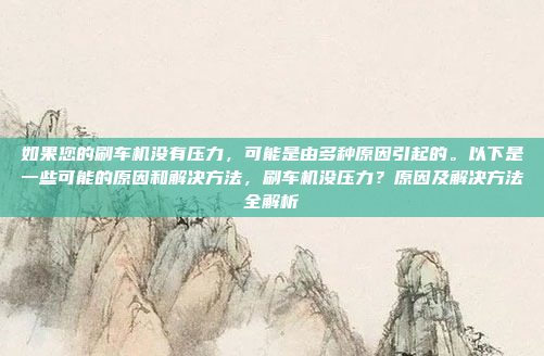 如果您的刷车机没有压力,可能是由多种原因引起的,以下是一些可能的原因和解决方法:,1. **压力开关问题**:压力开关故障可能导致机器无法正常工作,检查压力开关是否正常,必要时进行更换。,2. **气泵故障**:气泵损坏或老化可能导致压力不足,检查气泵的运行状态,确保其正常工作。,3. **管路堵塞或泄漏**:管路中的堵塞或泄漏会影响压力,检查管路,清理堵塞物或修复泄漏点。,4. **电源问题**:电压不稳或电源接触不良可能导致压力不足,检查电源连接,确保电压正常。,5. **喷嘴堵塞**:喷嘴堵塞会影响压力输出,清理或更换堵塞的喷嘴。,通过检查以上可能原因并采取相应的解决措施,可以有效解决刷车机无压力的问题。