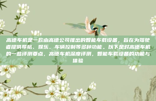 高德车机是由高德公司推出的一款智能车载设备,旨在为驾驶者提供导航、娱乐、车辆控制等多种功能,根据评测,高德车机在导航准确性方面表现出色,能够实时更新地图数据并提供精准的路线规划,其界面设计简洁直观,操作流畅,支持语音控制,进一步提升了驾驶的安全性和便捷性,高德车机还集成了丰富的娱乐功能,如音乐播放、 podcasts 和在线广播,为驾乘者带来更舒适的出行体验,评测中也提到,高德车机与车辆的集成度较高,支持多种品牌和型号的车辆适配,安装和使用相对便捷,部分用户反馈在复杂路况下的语音交互体验有待优化,且系统稳定性在长时间运行时偶有卡顿现象,总体而言,高德车机凭借其强大的功能和良好的用户体验,成为一款值得考虑的车载设备。