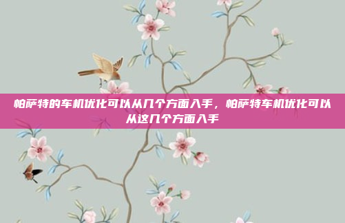 帕萨特的车机优化可以从多个关键方面入手,以提升车辆的整体性能和驾驶体验,动力系统的优化是核心,包括改进发动机的燃烧效率和排放控制,以实现更高的动力输出和更低的油耗,传动系统的优化同样重要,通过升级变速器或调整齿轮比,可以进一步提升换挡平顺性和动力传递效率,空气动力学的优化也是不可忽视的一环,通过改进车身设计和降低风阻,能够有效提升车辆的稳定性和能效,底盘调校的优化则能显著改善车辆的操控性和舒适性,使其在不同路况下表现更佳,电子控制系统的升级,如ABS、ESP等,可以提升车辆的安全性和智能化水平,综合这些方面的优化,帕萨特的性能和驾驶体验将得到全面提升。
