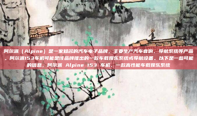 阿尔派(Alpine)是一家知名的汽车电子品牌,专注于生产高质量的汽车音响、导航系统等产品,阿尔派153车机可能是该品牌推出的一款车载娱乐系统或导航设备,旨在为驾驶者提供智能化的车载体验,该设备可能集成了导航、娱乐、蓝牙连接、语音控制等多种功能,支持多种音频格式播放和智能交互操作,阿尔派153车机的设计注重用户体验,操作简便且功能丰富,能够满足现代驾驶者对车载娱乐和导航系统的需求,作为阿尔派的代表性产品,153车机可能在性能、音质和智能化方面表现出色,受到广泛认可。