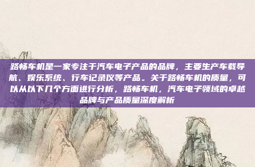 路畅车机是一家专注于汽车电子产品的品牌,主要生产和销售车载导航、娱乐系统、行车记录仪等产品,关于其质量,可以从以下几个方面进行分析:技术创新是其核心竞争力之一,路畅车机注重研发,不断提升产品的智能化和用户体验;其制造工艺和材料选择严格把关,确保产品耐用性和稳定性;路畅车机还注重售后服务和用户体验,提供完善的售后支持和优质的客户服务,总体来看,路畅车机在产品质量、技术创新和服务方面表现较为突出,是一个值得信赖的汽车电子产品品牌。