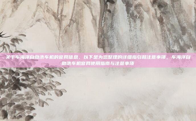 ,车海洋自助洗车机提供24小时便捷服务,用户可通过官网或微信小程序查询附近网点、获取操作指引及优惠活动,设备支持高压清水、泡沫清洁、吸尘等多功能自助清洗,需扫码支付启动(部分网点支持会员卡),使用前请移除车内贵重物品,避免高压水枪直射车身标识或敏感部位,官网提供故障报修、客服热线及加盟合作入口,建议首次用户观看操作视频以确保流程规范,环保设计强调循环水处理系统,洗车污水经净化后达标排放,注意寒冷天气需提前确认设备防冻状态,避免结冰影响使用。 ,(注:实际官网内容可能更新,请以最新信息为准。)