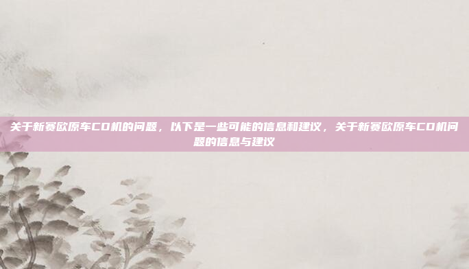关于新赛欧原车CD机的问题,以下是一些关键信息和建议:新赛欧原车CD机可能存在故障率较高、兼容性问题以及维修成本较高等问题,如果CD机出现故障,建议先检查线路和连接是否正常,必要时联系4S店或专业维修人员进行检修,如果决定更换CD机,可以选择兼容性较好的 aftermarket 产品,但需注意音质和功能是否符合需求,部分车主选择安装手机互联功能或更换为多媒体娱乐系统,以提升使用体验,在更换或维修前,建议详细咨询专业人士,确保选择合适的解决方案。