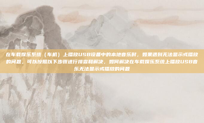 通过以上步骤,可以逐步排查并解决车机无法显示或播放USB本地音乐的问题,如果问题依然存在,可能需要进一步的专业技术支持。