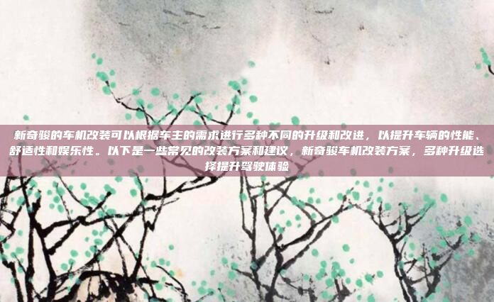 新奇骏的车机改装可以根据车主的个性化需求进行多种升级和改进,以提升车辆的性能、舒适性和娱乐性,常见的改装方案包括更换更高性能的车机系统,优化车辆的响应速度和操作体验;升级音响系统,提升音质和听觉享受;安装智能设备,如导航、倒车影像或行车记录仪,增强驾驶安全和便利性;以及优化中控屏幕的显示效果和功能布局,使其更符合用户的使用习惯,还可以通过定制界面或添加个性化功能,进一步提升车机的智能化水平,改装时需选择合适的配件和专业技术人员,确保改装后的系统与车辆兼容且安全可靠。