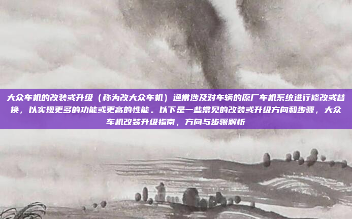 改大众车机是指对大众车辆的原厂车机系统进行改装或升级,以实现更多功能或提升性能,改装通常包括修改或替换原厂系统,常见升级方向包括功能扩展(如增加智能交互、导航、娱乐功能)、性能优化(如提升运行速度、响应能力)以及界面改进(如增强显示效果、操作体验),改装步骤一般涉及硬件更换、软件适配和系统调试,需选择合适的硬件设备并确保与车辆兼容,改装后,车机系统可提供更丰富的功能和更流畅的使用体验,满足车主对智能化和个性化的需求。