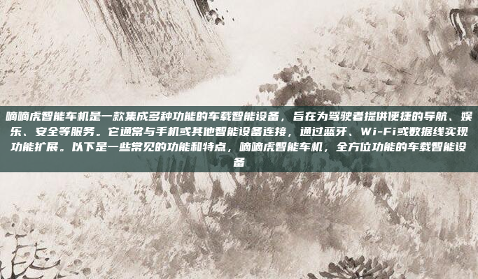 嘀嘀虎智能车机是一款集成多种功能的车载智能设备,旨在为驾驶者提供便捷的导航、娱乐、安全等服务,它通过蓝牙、Wi-Fi或数据线与手机或其他智能设备连接,实现功能扩展,该设备的主要功能包括实时导航、多媒体娱乐、语音控制、车辆监控等,能够帮助驾驶者更安全、高效地使用车辆,嘀嘀虎智能车机还支持多种接口和协议,兼容性强,可满足不同用户的需求,其设计注重用户体验,操作简便,功能丰富,为驾驶者带来智能化的行车体验。