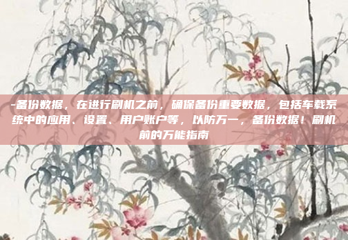 在进行刷机操作之前,备份车载系统中的重要数据(如应用、设置、用户账户等)至关重要,以防止数据丢失,确保备份到安全存储设备或云端存储,避免在刷机过程中出现意外导致数据损坏,建议在刷机前完成全面备份,并保留备份文件的最新版本,以防后续操作中出现问题。