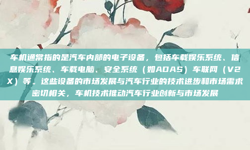 如果你有更具体的问题,比如车机市场的现状、未来趋势,或者进入车机市场的具体方法,可以进一步说明,我会尽力提供更详细的解答。