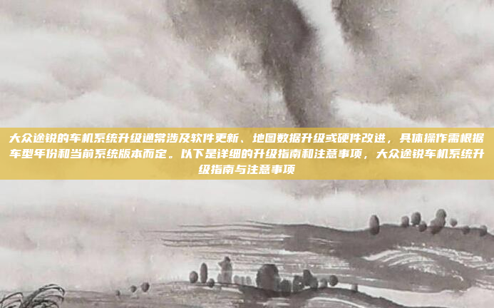 100-200字):** ,大众途锐的车机系统升级主要包括软件更新、地图数据升级及硬件改进,具体步骤需根据车型年份和当前系统版本确定,用户可通过官方渠道(如4S店或大众官网)获取最新升级包,或使用车载系统自动检测更新功能,升级前需确保车辆处于通电状态且电池电量充足,避免中断导致系统故障,部分老款车型可能需要更换硬件(如导航模块)以兼容新功能,注意事项包括:备份个人数据、关闭第三方设备连接,并严格遵循官方指引操作,若升级失败或出现异常,建议联系专业技术人员处理,以免影响车机正常使用,定期升级可优化系统性能并提升用户体验。