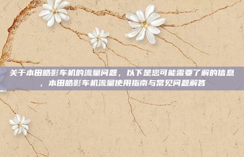 ** ,本田皓影的车机流量问题主要涉及内置SIM卡的流量套餐及使用规则,购车时通常会赠送一定期限的免费流量(如1-3年),超出后需自费购买,流量主要用于导航、在线音乐、OTA升级等功能,部分基础服务(如紧急救援)可能不受流量限制,用户可通过车机系统或官方App查询剩余流量,并选择运营商提供的续费套餐,若遇到信号弱或流量消耗异常,建议检查网络设置或联系4S店排查硬件问题,建议用户合理规划流量使用,避免影响车联网功能体验。