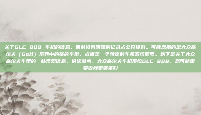 目前关于GLC 809的车机信息尚不明确,可能指大众高尔夫系列中的某款车型或特定车机系统,大众高尔夫的车机系统通常具备娱乐、导航、语音控制等功能,支持多种连接方式以实现互联体验,由于GLC 809的具体信息未有公开,建议进一步确认车型或相关资料,以便获取更详细的功能描述。