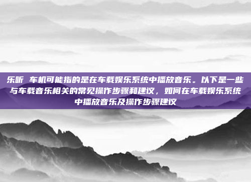 车载音乐系统是指安装在汽车内的娱乐设备,用于播放音乐、播客或导航等功能,以下是使用车载音乐系统的一些常见操作步骤和建议:确保车载设备已连接到车载娱乐系统,通常通过蓝牙或 aux 连接,调整音量和音质设置,以获得最佳听觉体验,建议定期检查音频输出设置,确保设备正常工作,可以使用语音助手(如车载系统内置的语音控制功能)来操作音乐播放,保持车载环境安静,避免干扰设备正常运行,通过这些操作和建议,可以更好地享受车载音乐系统带来的便利和乐趣。
