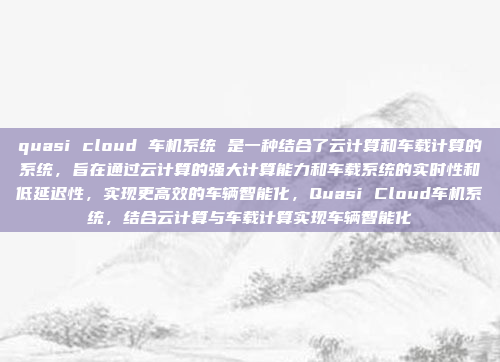 quasi cloud 车机系统 是未来汽车智能化发展的趋势之一,通过云计算和车载计算的结合,quasi cloud 车机系统 有望实现更智能、更高效的汽车系统,它不仅能够提升车辆的性能和用户体验,还能够为自动驾驶、智能驾驶和车辆安全等领域带来革命性的变化。