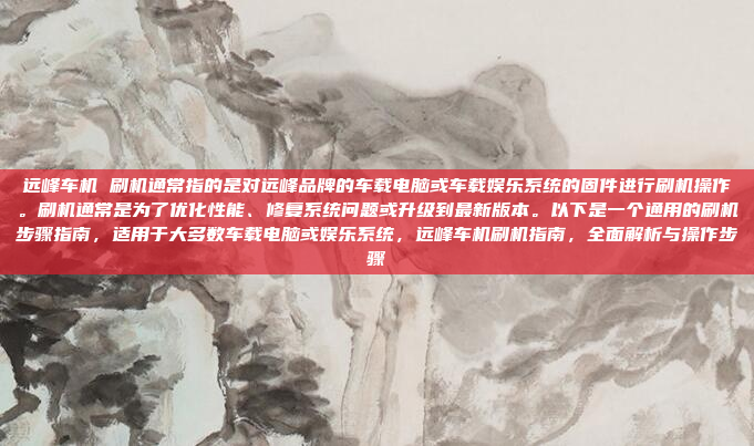 远峰车机刷机是指对车载电脑或娱乐系统的固件进行更新或重置操作,通常用于优化性能、修复系统问题或升级至最新版本,刷机操作有助于提升设备运行效率、解决常见问题或享受最新功能,本文提供了一个通用的刷机步骤指南,适用于大多数远峰品牌的车载设备,帮助用户顺利完成刷机操作,确保设备稳定运行。