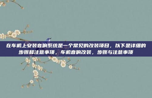 在汽车上安装音响系统是一项常见的改装项目,通常包括选择合适的音响设备、安装线缆、安装音响设备、调试和测试,需要选择与车辆兼容的音响设备和线缆,确保信号传输的稳定性,安装时,应确保音响设备位置合理,避免干扰车辆功能,调试阶段需要检查电源供应、信号质量以及音量控制,确保音响效果最佳,安装过程中需注意硬件兼容性,避免因硬件问题导致系统故障,安装完成后应进行全面测试,确保音响系统正常运行。