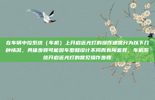 智能网联车型通常配备数字化灯光管理系统,操作流程如下: